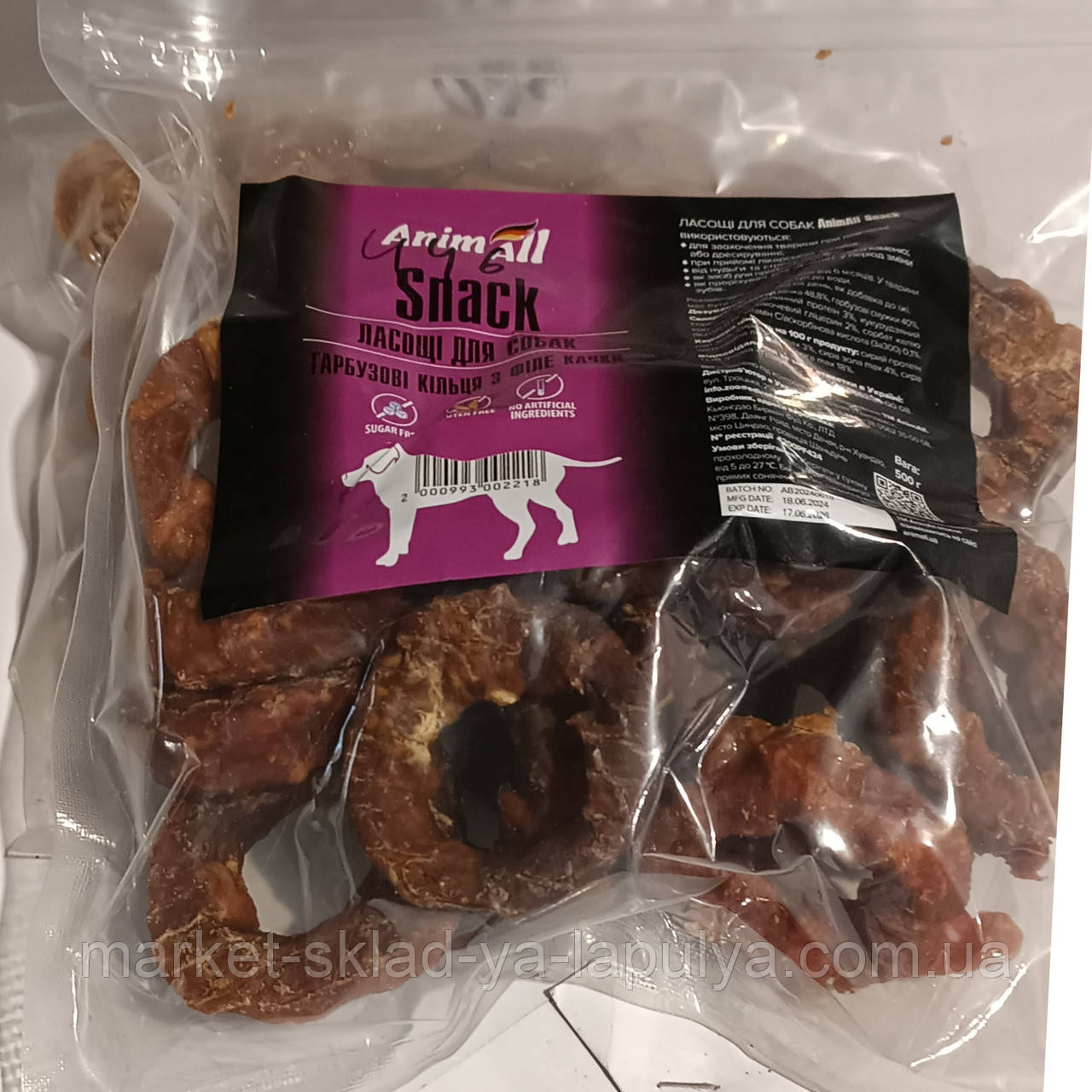 Ласощі для собак гарбузові кільця з філе курки 500 гр